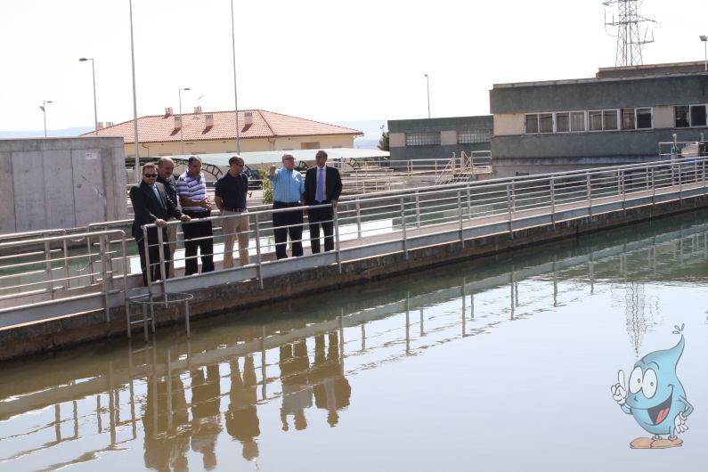 Desde Razbona, donde se encuentra situada la avería de la canalización más antigua de las dos que nacen en la presa con dirección a la potabilizadora, Jaime Carnicero y Javier Fernández, acompañados por el equipo técnico de la MAS, se han desplazado hasta la ETAP para interesarse por la adaptación que ha sido necesario llevar a cabo con motivo de la reparación de la referida conducción.