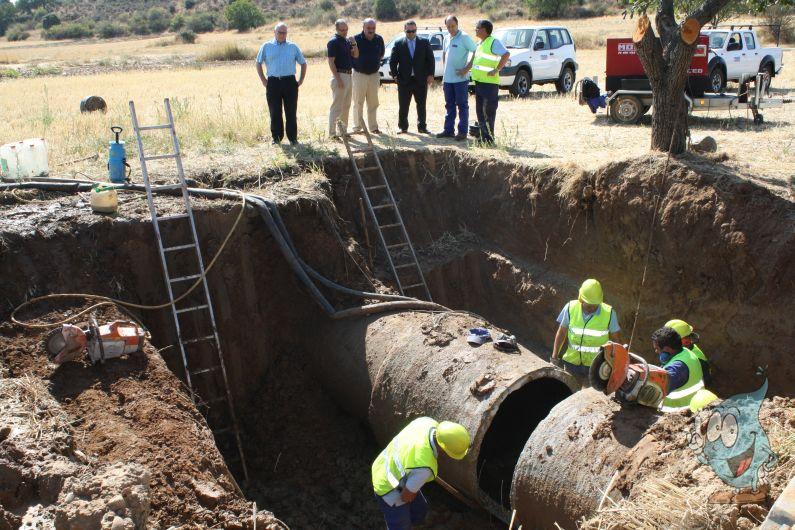 Jaime Carnicero y Javier Fernández supervisan la obra de reparación de una de las conducciones Beleña-ETAP