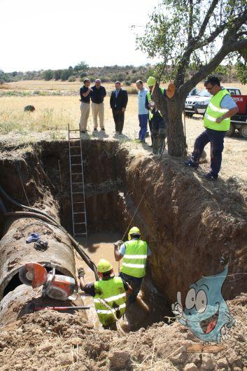 Jaime Carnicero y Javier Fernández supervisan la obra de reparación de una de las conducciones Beleña-ETAP
