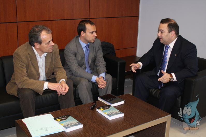 El presidente de Mancomunidad de Aguas del Sorbe, Jaime Carnicero, el alcalde de Azuqueca de Henares, Pablo Bellido, y el concejal y vocal de esta localidad, Julio García, han mantenido esta mañana una reunión en la sede de la Mancomunidad de Aguas del Sorbe (MAS) para tratar cuestiones que relacionan a ambas instituciones, ya que el municipio azudense es uno los 13 miembros de pleno derecho de la MAS.