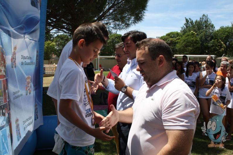 Tras las distintas eliminatorias y los juegos de la fiesta del agua, los ganadores han recibido sus trofeos y la acreditación para poder participar en la final del torneo. El presidente de la MAS, Jaime Carnicero, ha acompañado al alcalde de Cabanillas del Campo, Jaime Celada, y al edil cabanillero y diputado provincial, Antonio Ruiz, durante la entrega de medallas a todos los deportistas que se han clasificado para la final de la competición Interpueblos que se celebrará el 25 de agosto en el municipio de Villanueva de la Torre.