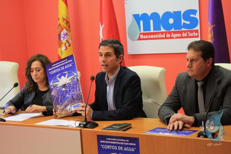 El presidente de la Mancomunidad de Aguas del Sorbe, Javier Rodríguez Palacios, acompañado de la presidenta de la Asociación de la Prensa de Guadalajara, Mar Corral, y del vicepresidente de la MAS, José Luis G. León, han presentado dos nuevos concursos patrocinados por la mancomunidad. Se trata de un novedoso concurso de Mini Documentales realizados con Dron, que lleva el sugerente título de “Cortos de Agua” y otro de Fotografía bajo el epígrafe “El Agua en el Espacio MAS” .