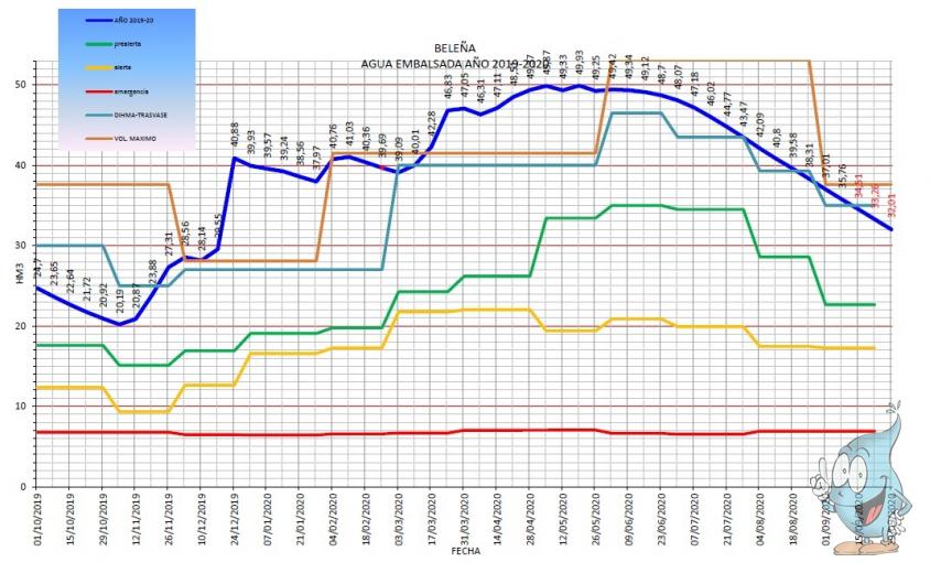 Con las cifras en la mano, el presidente de la MAS asegura que vivimos un momento de normalidad hidrológica que otorga garantías suficientes de cara al futuro inmediato, al situarnos con más de 10 Hm3 por encima del nivel de prealerta, que está fijado por la CHT en unos 22 hm3, "esto nos asegura que, aunque no lloviera nada, algo que parece muy improbable en el otoño y en los primeros días del invierno, no habría problemas de aquí a finales de 2020".