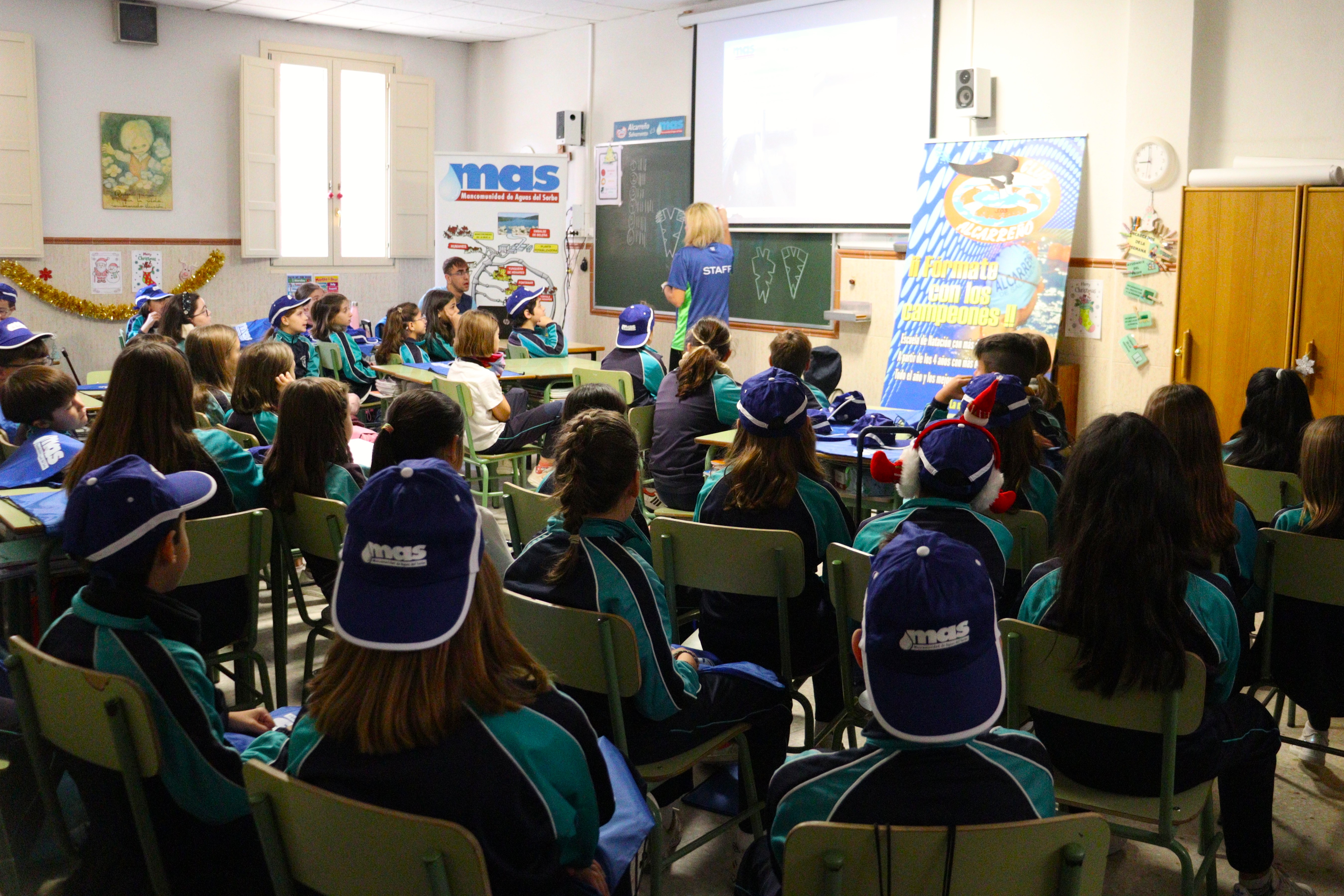 Mancomunidad de Aguas del Sorbe y Club Alcarreño de Salvamento y Socorrismo continúan con la campaña “Somos Agua, ¡Cuídala!, ¡Disfrútala! En esta ocasión han sido los alumnos de tercero, cuarto, quinto y sexto de Primaria del C.E.I.P. Niña María de Guadalajara los que durante dos jornadas han participado en estas charlas educativas que tienen como objetivo que los más pequeños conozcan de dónde viene el agua que beben, el tratamiento que recibe para ser apta para su consumo y el recorrido que hace hasta que llega a sus hogares.